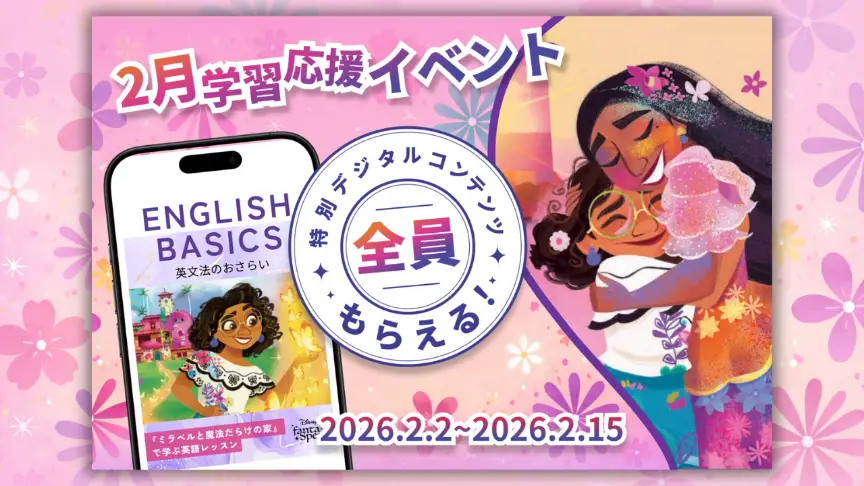 - アプリ内チケット(応募者全員) 条件:「物語を聞く」レッスンを5回実施 - 英文法のおさらい[特別デジタルコンテンツ](応募者全員) 条件:「スピーキング」レッスンを2回実施特別デジタルコンテンツでは、『ミラベルと魔法だらけの家』の英文を使って、中学英文法や単語の復習ができます。